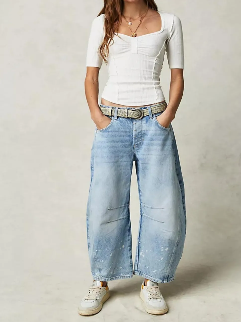 Step into the latest trend with our Mid Rise Barrel Jeans! Featuring a unique barrel silhouette, these jeans offer a flattering fit and comfortable mid rise. Perfect for adding a playful touch to your wardrobe.