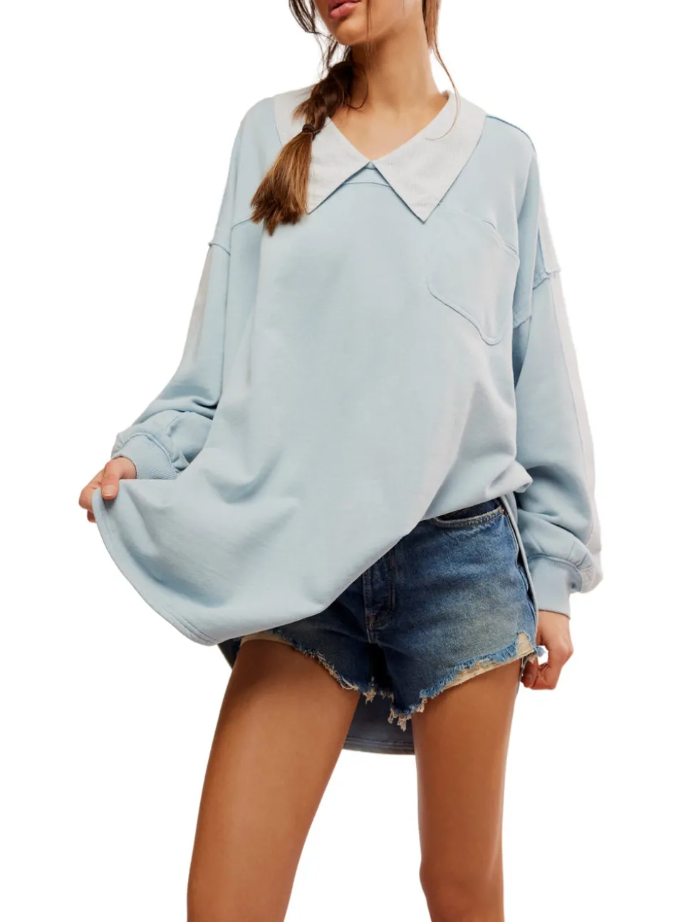 So slouchy and seriously oversized, this too-cool sweatshirt is featured in a long-sleeve silhouette with cool contrast paneling and a collared neckline.