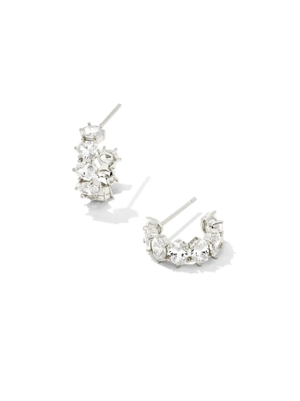 Kendra Scott Cailin Crystal Huggie Earrings – Rhodium Metal White CZ