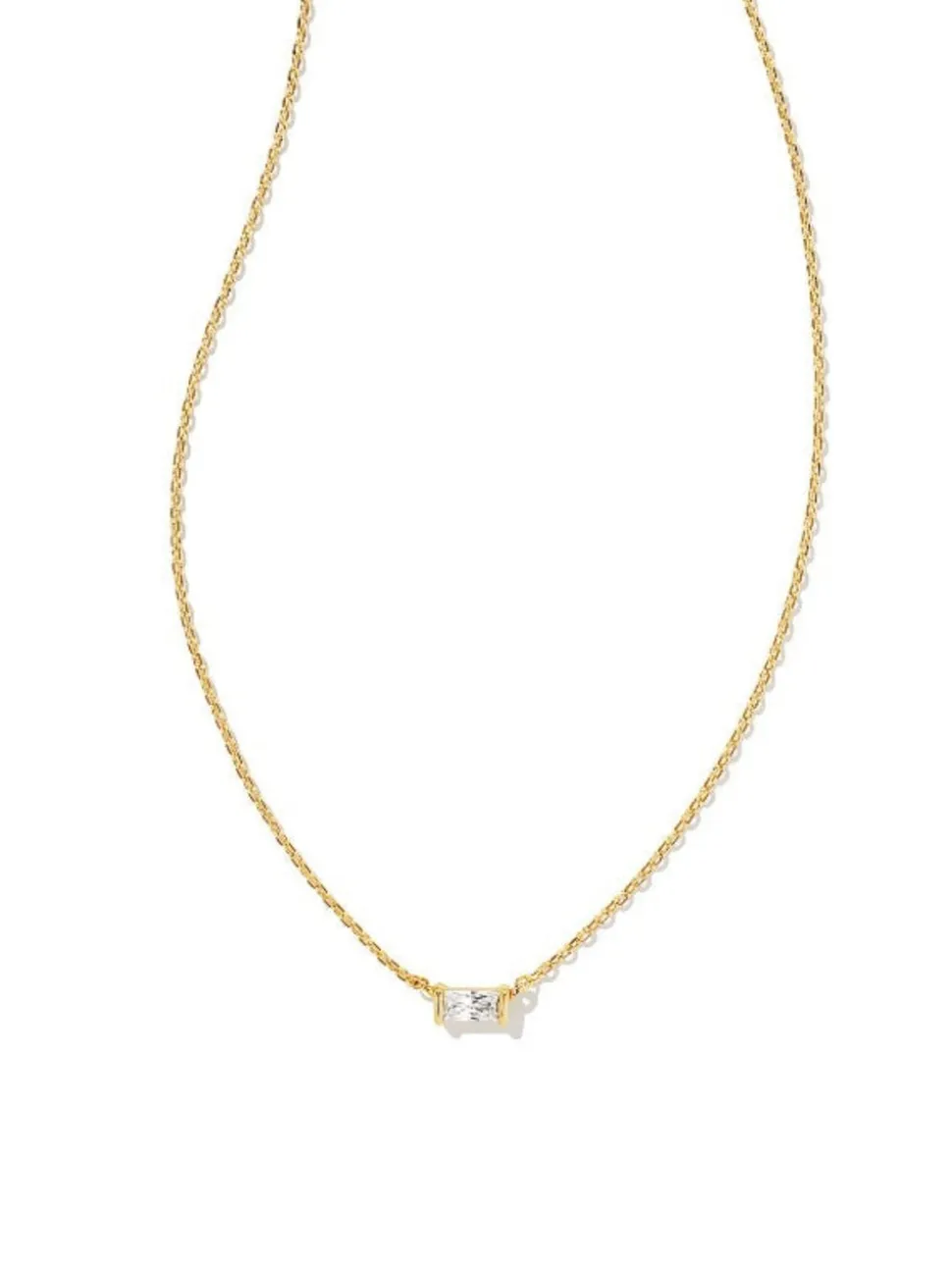 Subtle and refined, our Juliette Pendant Necklace in White Crystal features a singular baguette stone for timeless style. From date nights to dinner parties, this sophisticated pendant is sure to shine bright at all your celebrations.