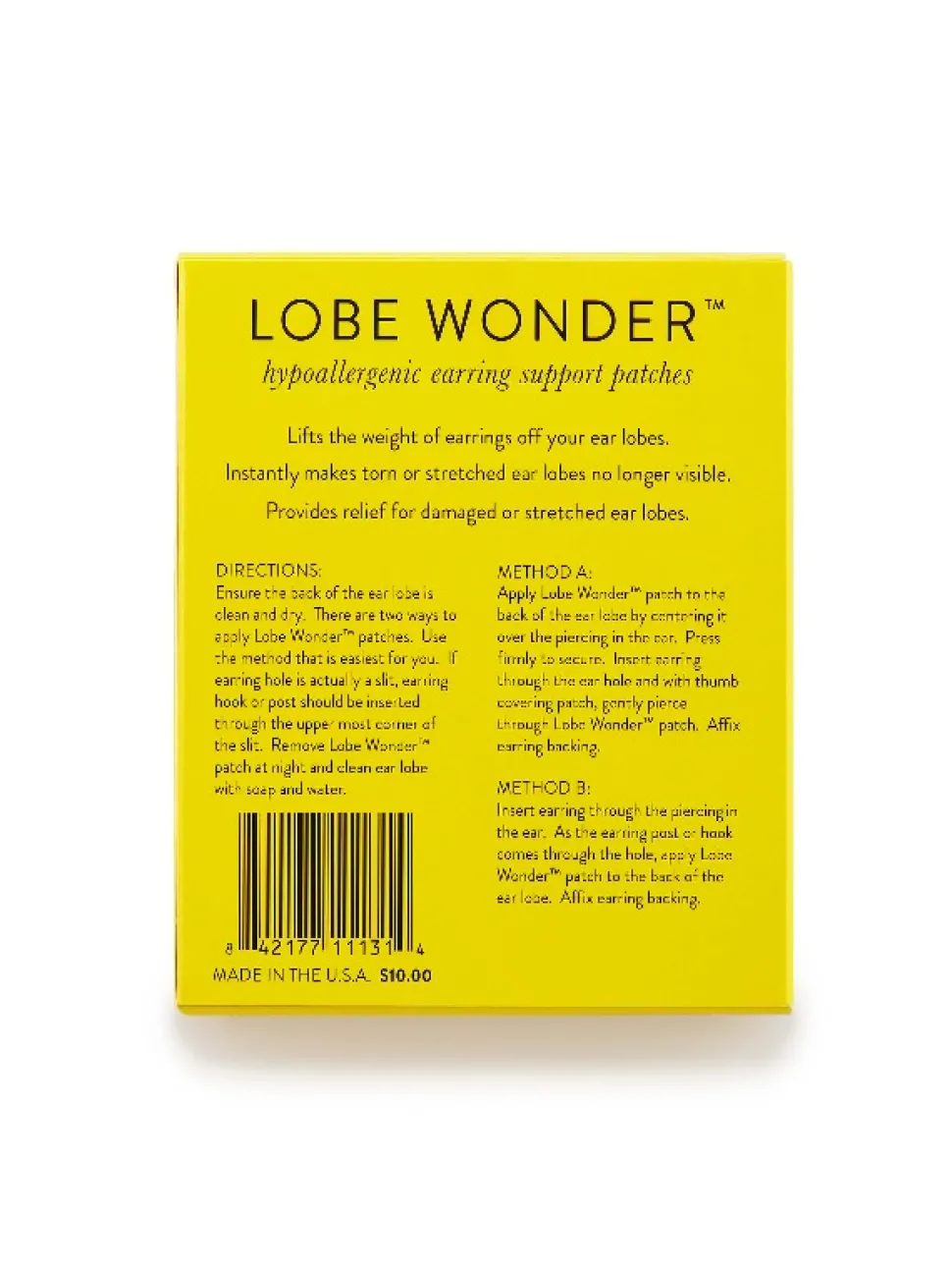 If your ears need a little support, look no further than Lobe Wonder. These hypoallergenic earring support patches take the weight of your earrings off of you and erase the look of torn or stretched ear lobes, truly putting the “Wonder” in Lobe Wonder. Hint: We love to gift a box of Lobe Wonder with a pair of stunning statement earrings.
