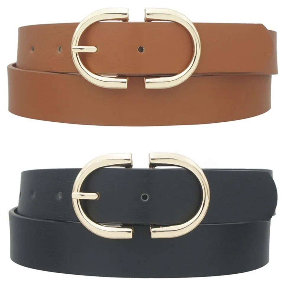 Perfect for fashion-forward individuals, the Mirror D Buckle Duo Belt adds a unique touch to any outfit. With its sleek, double-sided buckle and stylish design, this belt is sure to make a statement. Say goodbye to boring belts and hello to a bold accessory!