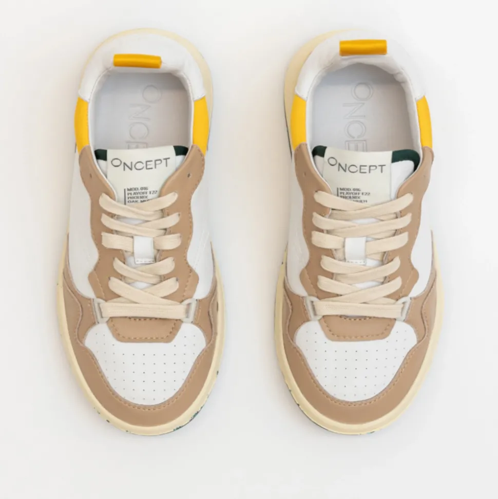 Meet the Phoenix, the courtside sneaker designed to take you from the sidewalk to the street with effortless cool. Oncept updated this retro style of the early 90’s with sleek lines and ultra-soft material for a timeless new look. Featuring a modern sneaker, organic cotton laces, luxe butter leather, and their signature re-speckled soles.