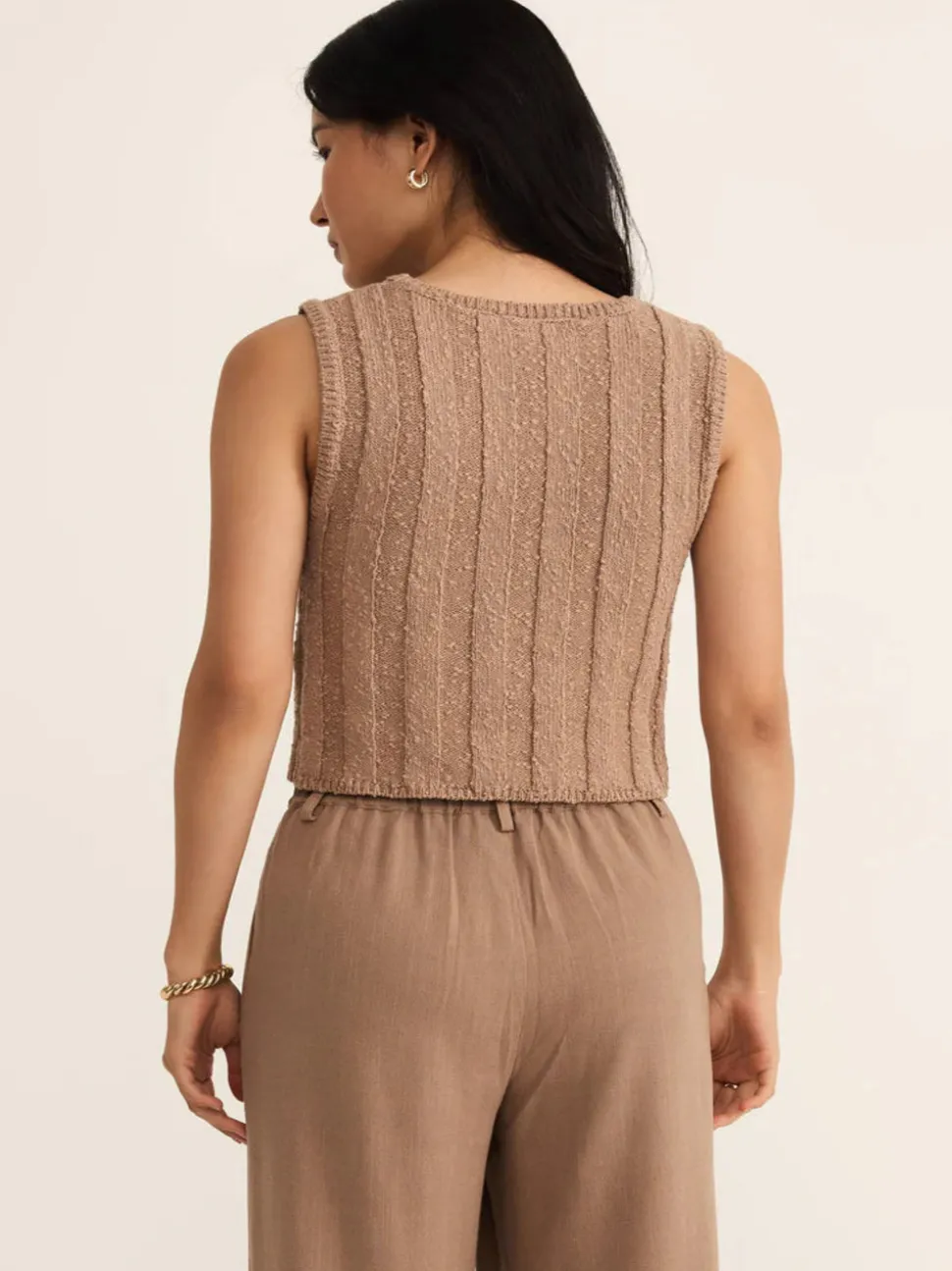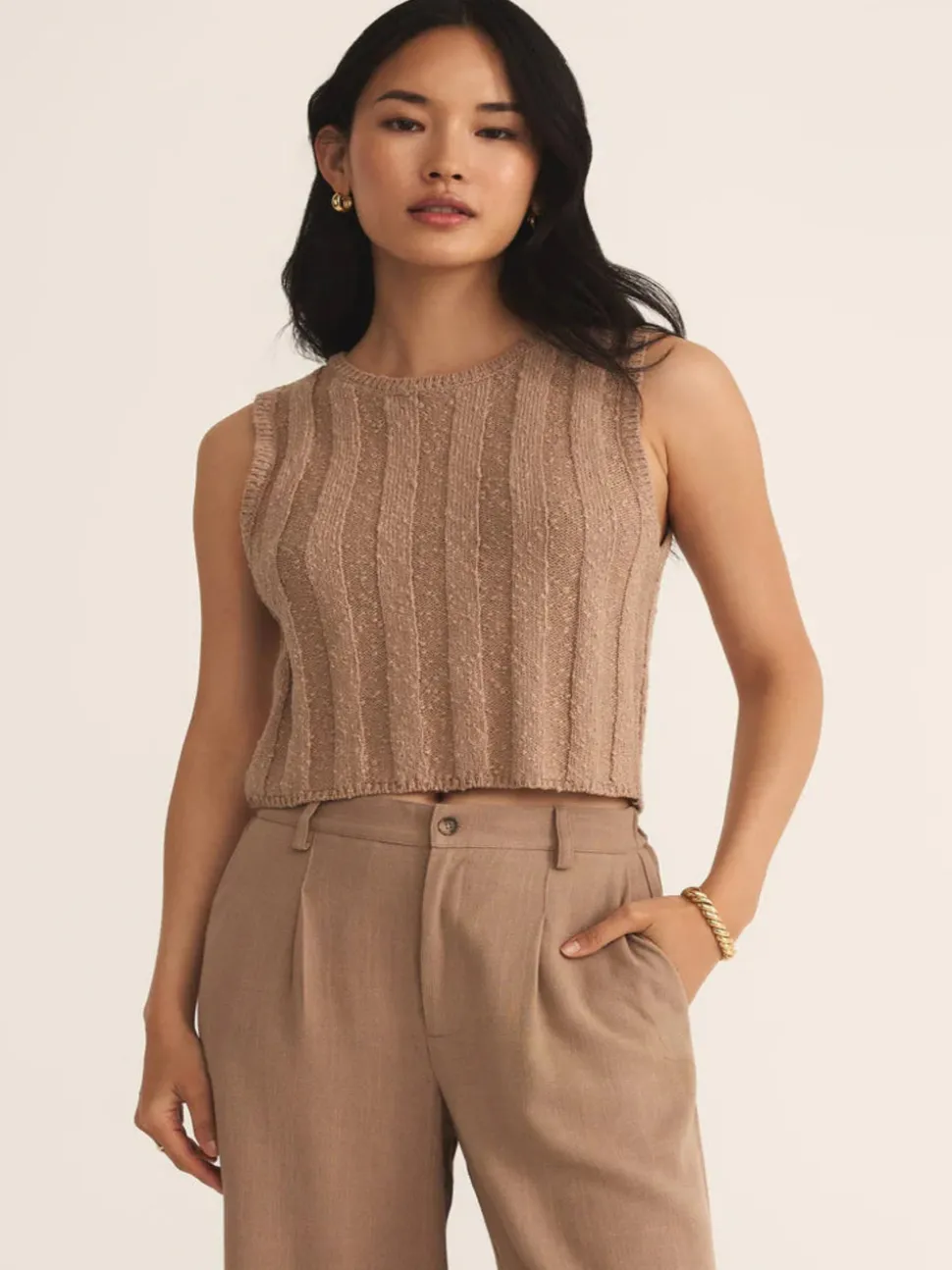 Made from soft, pebbled sweater yarns, this fitted ribbed crop top is the perfect balance of cozy and chic. With a bra-friendly sleeveless design, it’s the one you’ll reach for season after season.