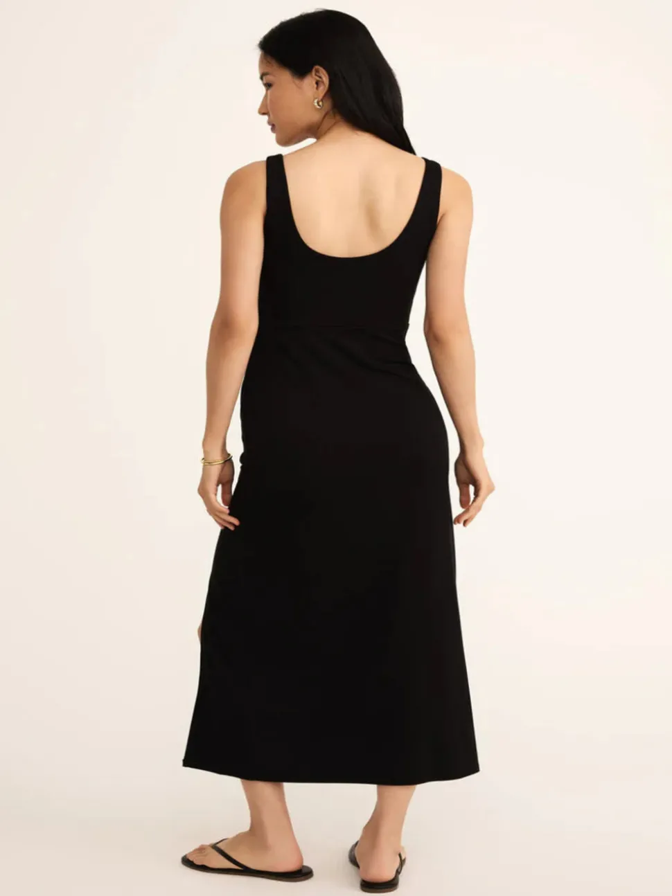 Flattering and fitted, this midi dress features a wide, bra-friendly strap and a flirty mid-thigh slit. Made from stretchy rayon, it hugs in all the right places.